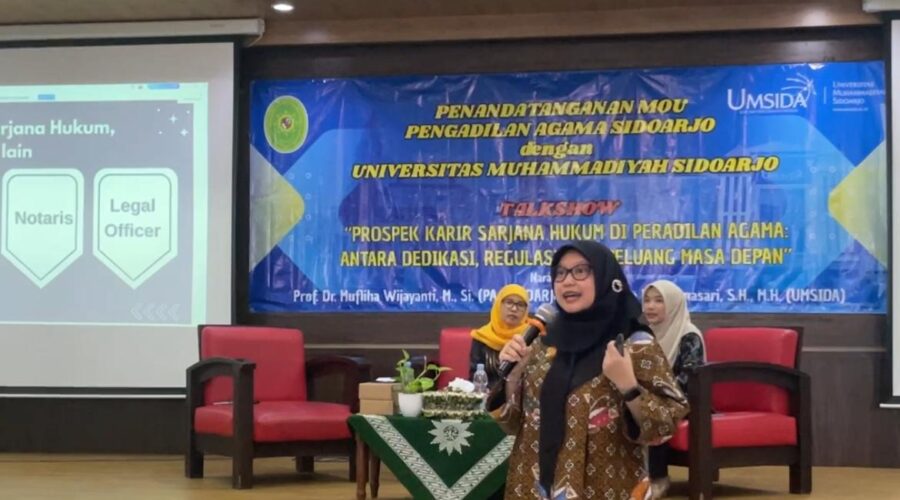 Fbhis.umsida.ac.id – Talkshow bertema “Karir Sarjana Hukum di Pengadilan Agama: Antara Dedikasi, Regulasi, dan Pejuang Masa Depan” sukses digelar pada Kamis, (26/06/2025) di Aula KH Mas Mansyur, Kampus 1 Universitas Muhammadiyah Sidoarjo (Umsida). Kegiatan ini merupakan hasil kolaborasi antara Fakultas Bisnis, Hukum, dan Ilmu Sosial (FBHIS) Umsida dengan Pengadilan Agama Sidoarjo, menghadirkan para praktisi dan akademisi hukum yang membagikan wawasan dan pengalaman kepada mahasiswa. Salah satu narasumber utama dalam forum...