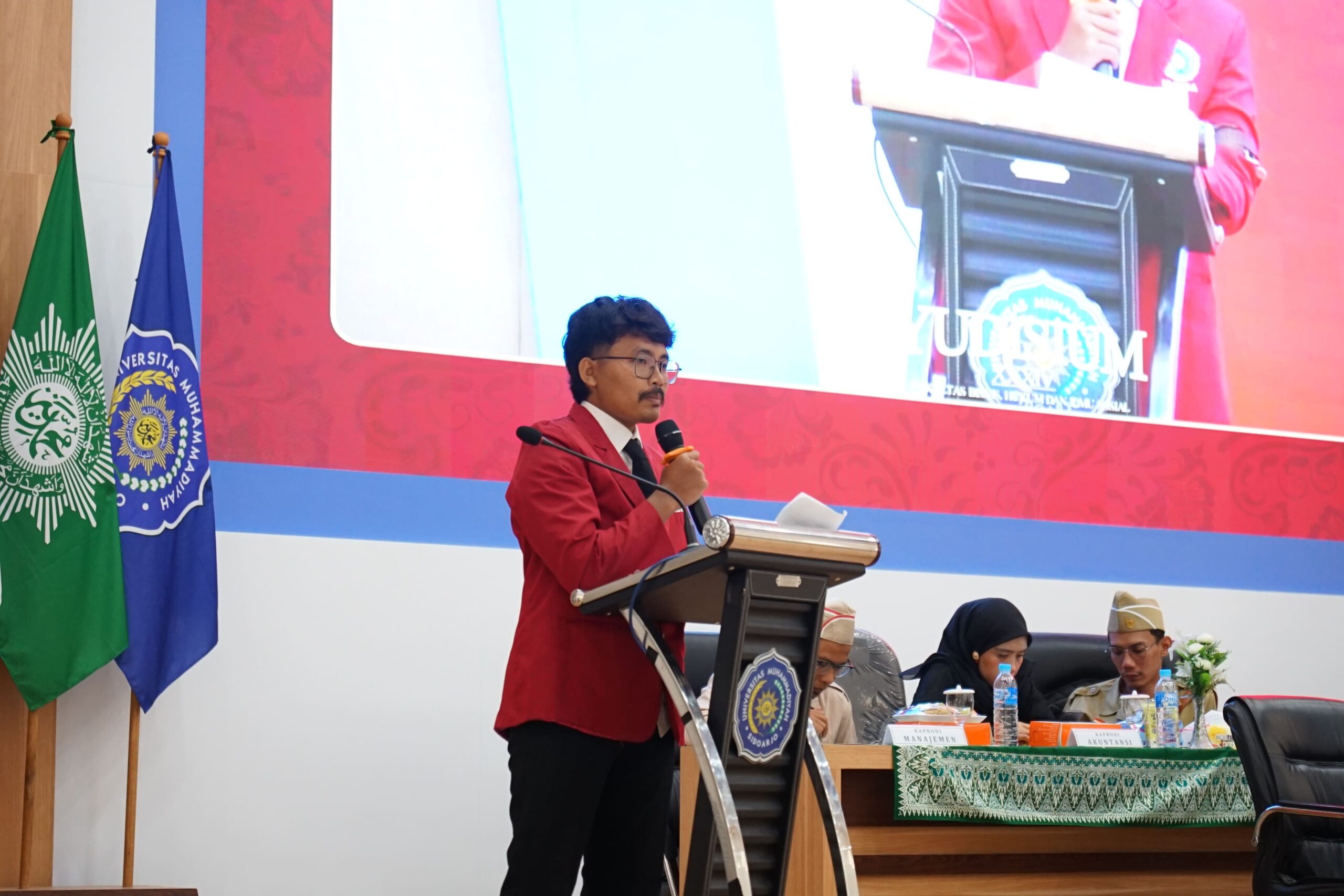 Fbhis.umsida.ac.id – Icho Ade Fikrianto, mahasiswa Prodi Ikom asal Lampung, menjadi perwakilan mahasiswa dalam acara Yudisium ke-34 Fakultas Bisnis, Hukum, dan Ilmu Sosial (FBHIS) Universitas Muhammadiyah Sidoarjo (Umsida) yang berlangsung di Aula Nyai Walidah, Kampus 3 Umsida pada Rabu, (05/11).