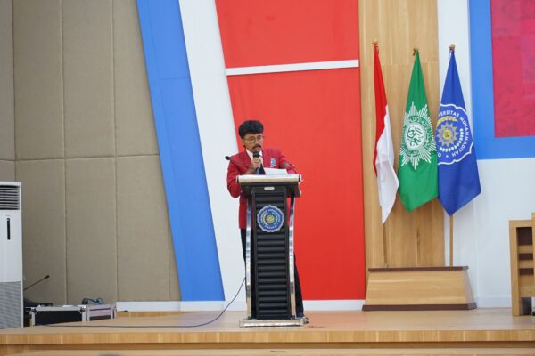 “Alhamdulillahirabbilalamin, puji syukur kita panjatkan atas nikmat yang diberikan Allah SWT sehingga kita dapat berdiri di sini menyelesaikan perjalanan panjang selama perkuliahan,” ujarnya.
