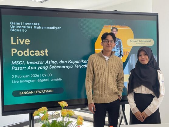 Kondisi ini menjadi topik utama dalam live podcast yang diselenggarakan Galeri Investasi Bursa Efek Indonesia di bawah naungan Fakultas Bisnis, Hukum, dan Ilmu Sosial Universitas Muhammadiyah Sidoarjo (FBHIS Umsida), Senin (2/2/2025), di Laboratorium Terpadu Akuntansi.