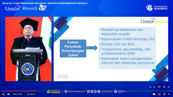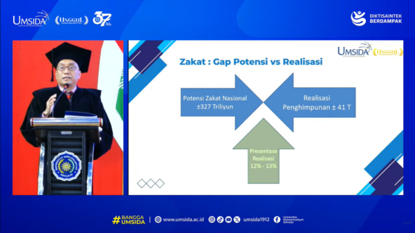 Kesenjangan besar ini disoroti Prof Dr Sigit Hermawan SE MSi dalam orasi ilmiah pada acara pengukuhan Guru Besar di Aula KH Ahmad Dahlan Kampus 1 Universitas Muhammadiyah Sidoarjo (Umsida), Senin, (09/02/2026).