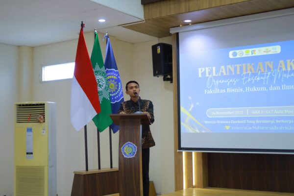 Fbhis.umsida.ac.id – Fakultas Bisnis, Hukum, dan Ilmu Sosial Universitas Muhammadiyah Sidoarjo (FBHIS Umsida) gelar Pelantikan Akbar Organisasi Eksekutif Mahasiswa pada Jumat (14/11).